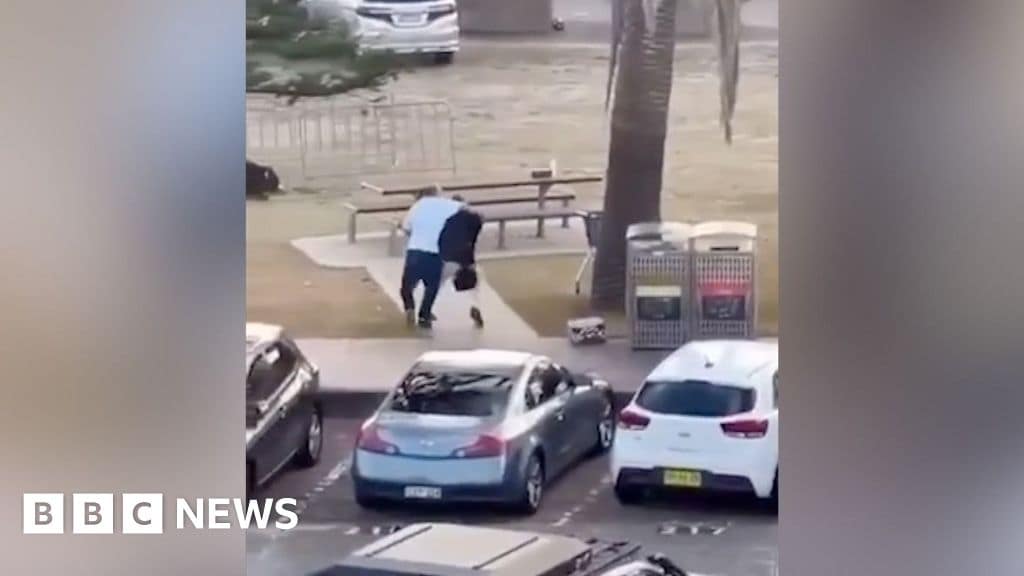 Footage captured by an eyewitness shows a man grappling with an alleged gunman, before wrestling the weapon off him.